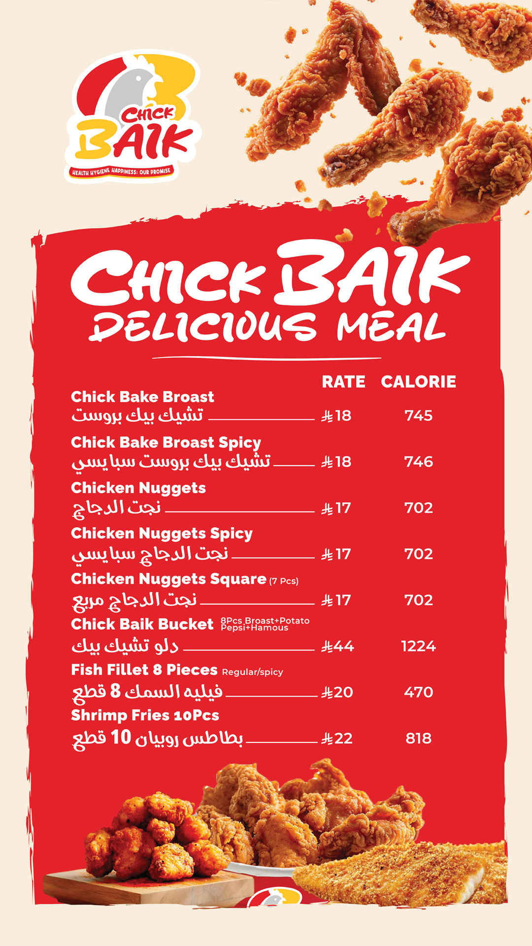At Chick Baik, we take pride in using premium ingredients, authentic spices, and carefully curated recipes that bring Middle Eastern flavors to life. Our commitment to freshness and quality ensures that every bite is packed with satisfaction – without compromising on health.